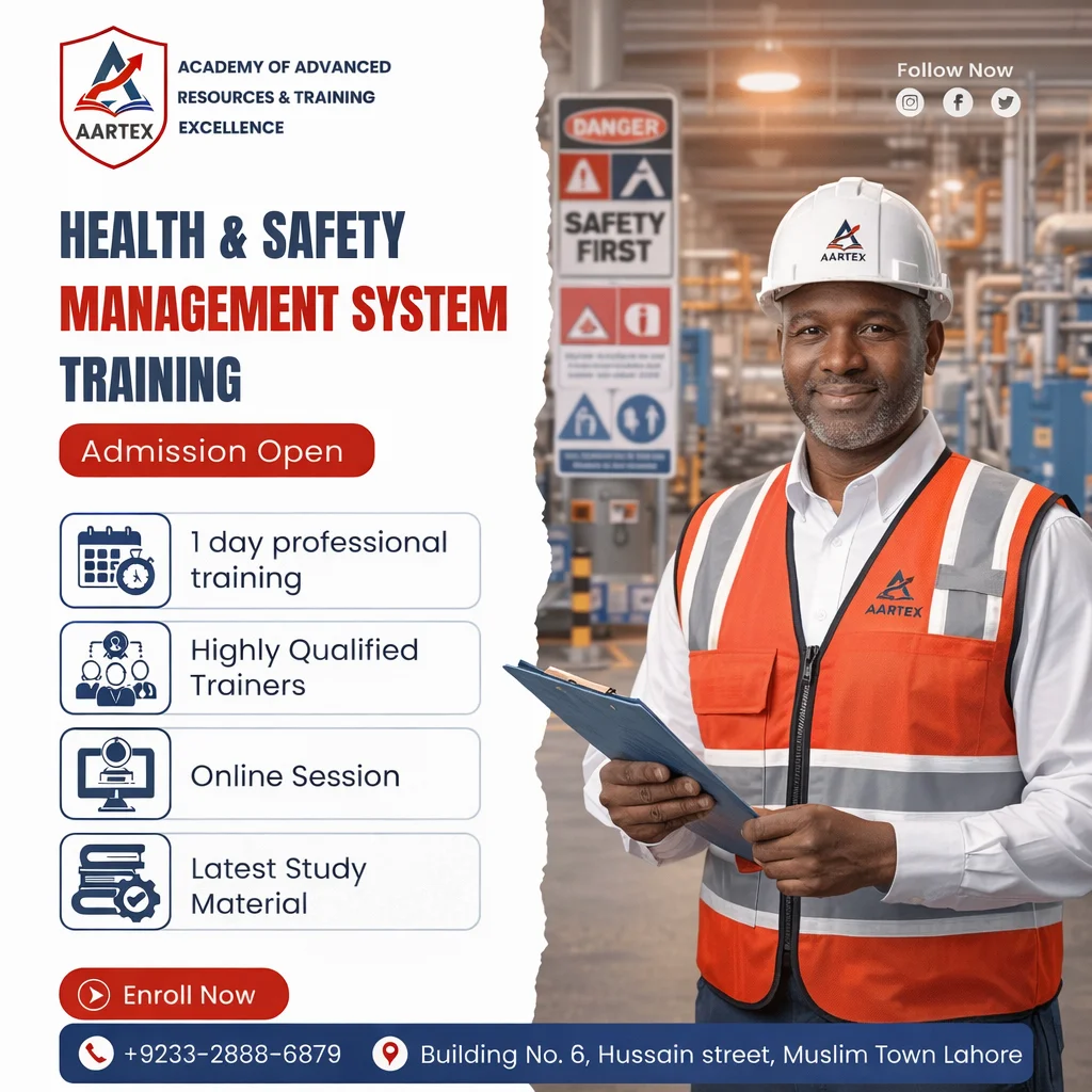 This course provides participants with essential knowledge of Health and Safety Management Systems and their role in improving workplace safety performance. It covers the structure, purpose, and key elements of a management system used to identify hazards, control risks, meet legal requirements, and promote continual improvement. The training is designed to help participants understand how a systematic approach supports a safer and healthier workplace.